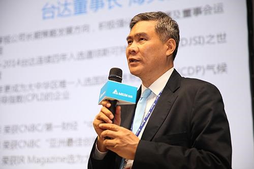 台达董事长海英俊先生表示:台达于工博会中首次展示台达自行研发的SCARA工业机器人与专用控制器和机器视觉系统,建构具备高精、高速、智能的完整自动化取放解决方案,打造精简、高整合性的机器人工作站,是工业自动化智能方案的具体呈现,能协助客户更有效控制成本与节能。这是台达"环保 节能 爱地球"的经营理念于产品规划与运营中的具体实践。此外,台达节能成果受到国际评比的肯定,于十月中获选大中华区唯一入选国际碳信息披露项目 (Carbon Disclosure Project, CDP) 气候绩效领导指数最高等级A级的电子公司。