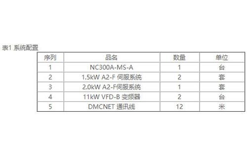 目前NC300A架构主要是走DMCNET网络,REMOT IO也是采用通讯型,所以整台机台的配线相当简单。见表1 系统配置