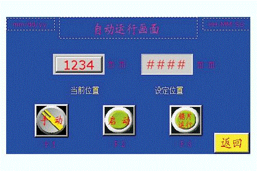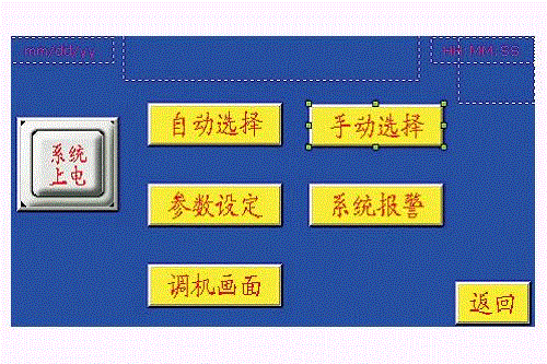 人机画面程序主画面如图2:选择设备工作方式,工艺参数设定,系统报警画面切换。