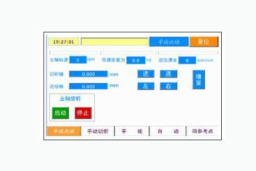 ■ 点击“进”“退”,切断轴运动。点“前”“后”,进料轴运动。其运动速度由“进给速度”设定。