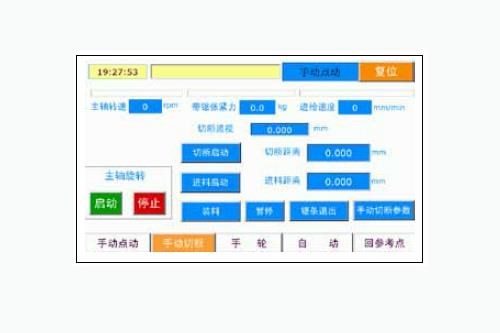 ■ 中途中想终止“手动切断”时,请先点击“暂停”,然后点“锯条退出”有效。点“锯条退出”,切断轴后退,锯条退出时主轴不停。