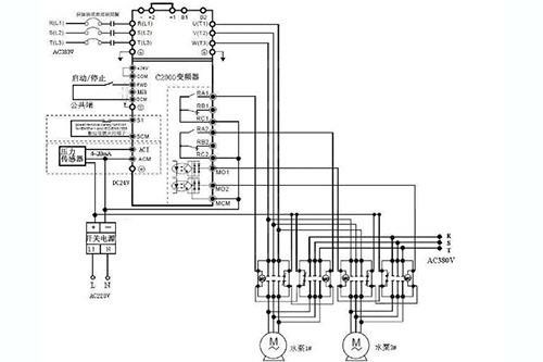 水泵变频恒压供水方式基于PID控制原理,维持管路供水压力的恒定。当用户用水量加大时,管路压力减小,变频器转速要提高以增加流量补充压力;反之,用户用水量减小时,管路压力增大,变频器转速要降低,使流量适当降低以使压力恒定。这样就可以使用户得到稳定的供水压力。
