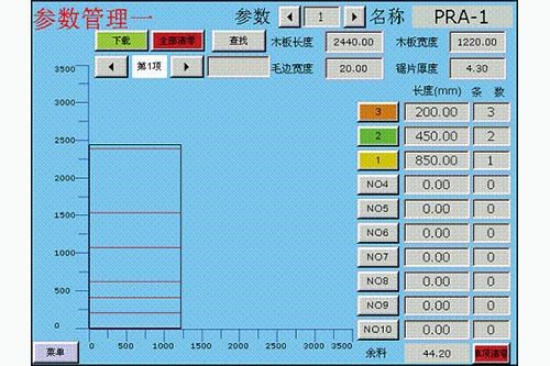 其中涉及到对送料机械手、压梁、锯片和靠板器的动作控制和各种开料尺寸、重量等的参数自动调用和管理。