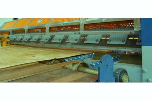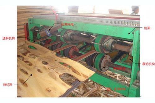 3、 切刀裁切时保证其线速度与木板送料线速度相同,避免了速度差造成挡板或拉板,这样切断口比较整齐,冲击比较小。