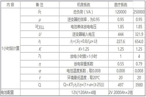 UPS电池的总容量,应按UPS容量,采用公式(2)估算出蓄电池的计算放电电流I,再根据公式(1)算出蓄电池的容量。