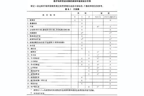 [2] 医疗场所安全设施的类别和级别划分示例(摘自GB/T 16895.24-2005附录B)