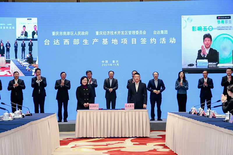 台达执行长郑平先生表示,感谢重庆政府规划完善的产业扶持政策与配套措施,营造良好的企业发展环境,大力支持台达在重庆的发展。重庆具有极大的发展潜力,今年前三季度GDP为全国前五名,台达很荣幸有机会参与重庆的投资建设,助力推进长江经济带高质量发展。今年是台达成立五十周年,在迈向另一个五十年的起点上,将在重庆建设台达在中国大陆的首座西部生产基地,生产制造范畴首度扩展至西部,可进一步深入参与内陆地区发展,是新的挑战,也是新的机遇,更是台达发展历史上至为重要的里程碑,意义非凡,期待携手重庆政府,开创共赢新局面。