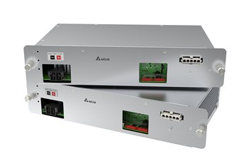 高效模块化充电方案,满足堆高机用需求 专为机柜安装设计,每个模块可提供高达 3 kW 或 70 A 的充电效能。可透过 CAN 总线串连系统控制器进行控制,为各种类型的电池充电。