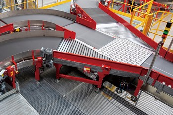 台达通讯型区域传感器 AS-B/E系列,能大幅提升分拣效率。只要将传感器安装在供包台的扫描架上,当包裹随着等速输送带通过传感器,传感器能等时输出光轴检测数据并上传,由上位机拼整包裹轮廓,同时计算包裹截面积与中心位置。 取得包裹数据后,分拣系统根据输送带主线运转速度调整辅线,顺利将包裹传到输送带主线配盘中心位置,确保包裹配送稳定不掉落,实现货物高效分拣配送。